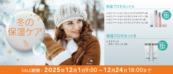 12月1日より「冬の保湿ケア プロモーション」を実施いたします。対象製品をお得な価格でご提供させていただきますので、この機会にぜひお買い求めください。